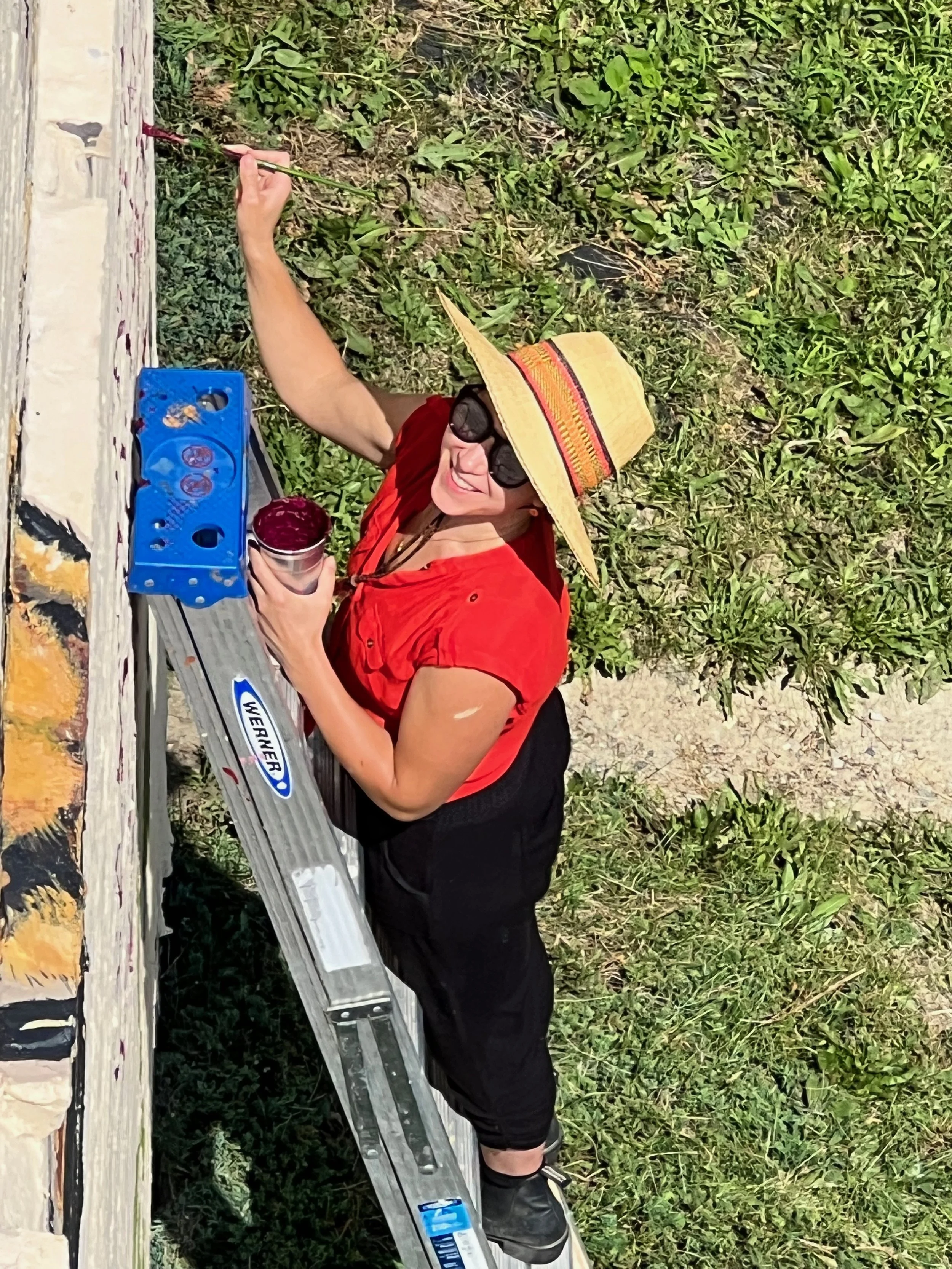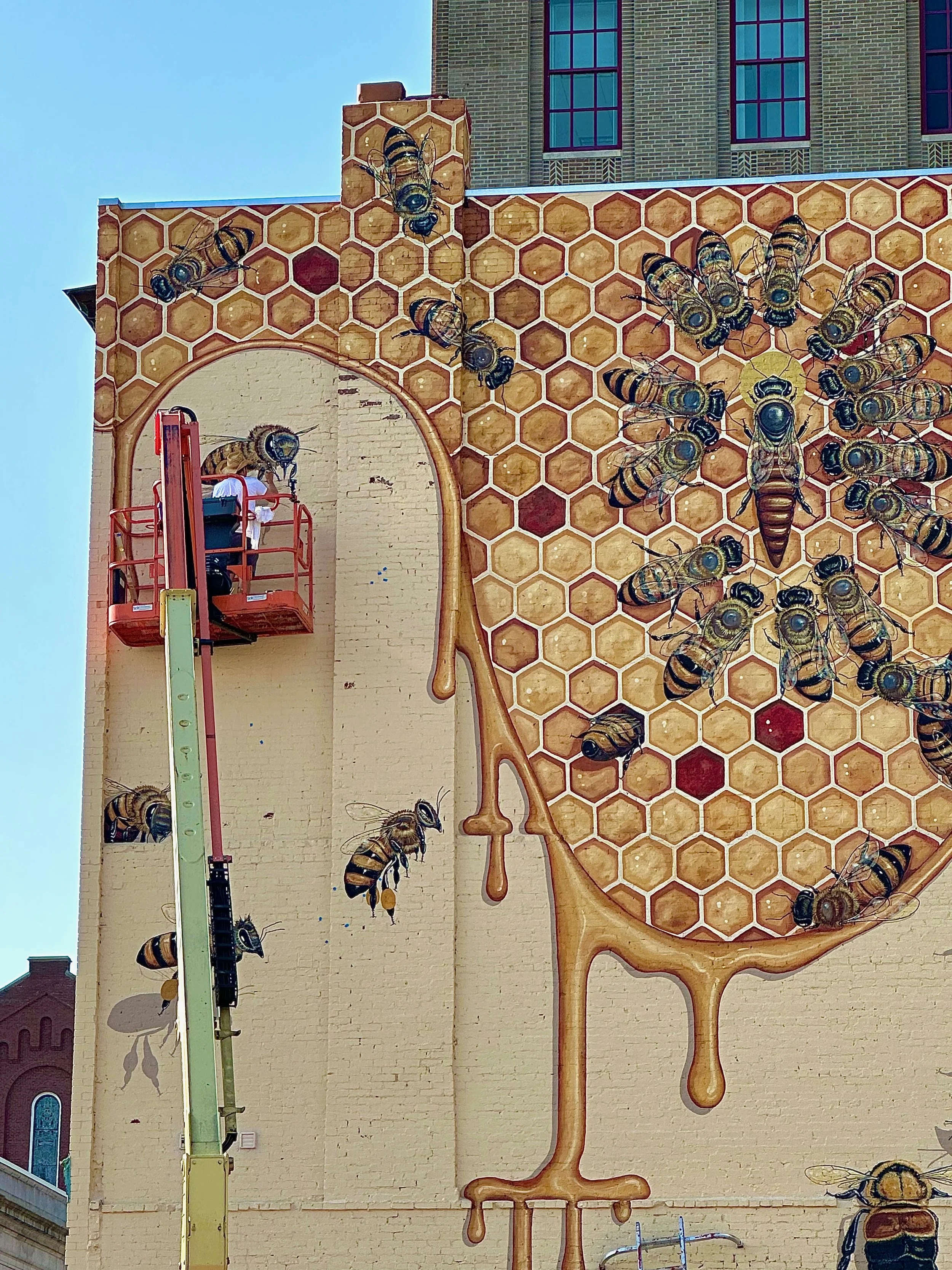 I also want to add a special “thank you!” to 11 year-old beekeeper Elizabeth Downs, Maine’s most celebrated beekeeper. She raised over $3500 toward the mural project and even came and painted with me! Never underestimate the power of this young generation coming up. They are doing things we never dreamed of when we were kids! One of the most heartwarming parts of the project has been watching the town take their pollinator game to the next level when they became a Bee City certified city and started planting pollinator gardens and trees throughout Bangor. Go team! That is what is it all about.
