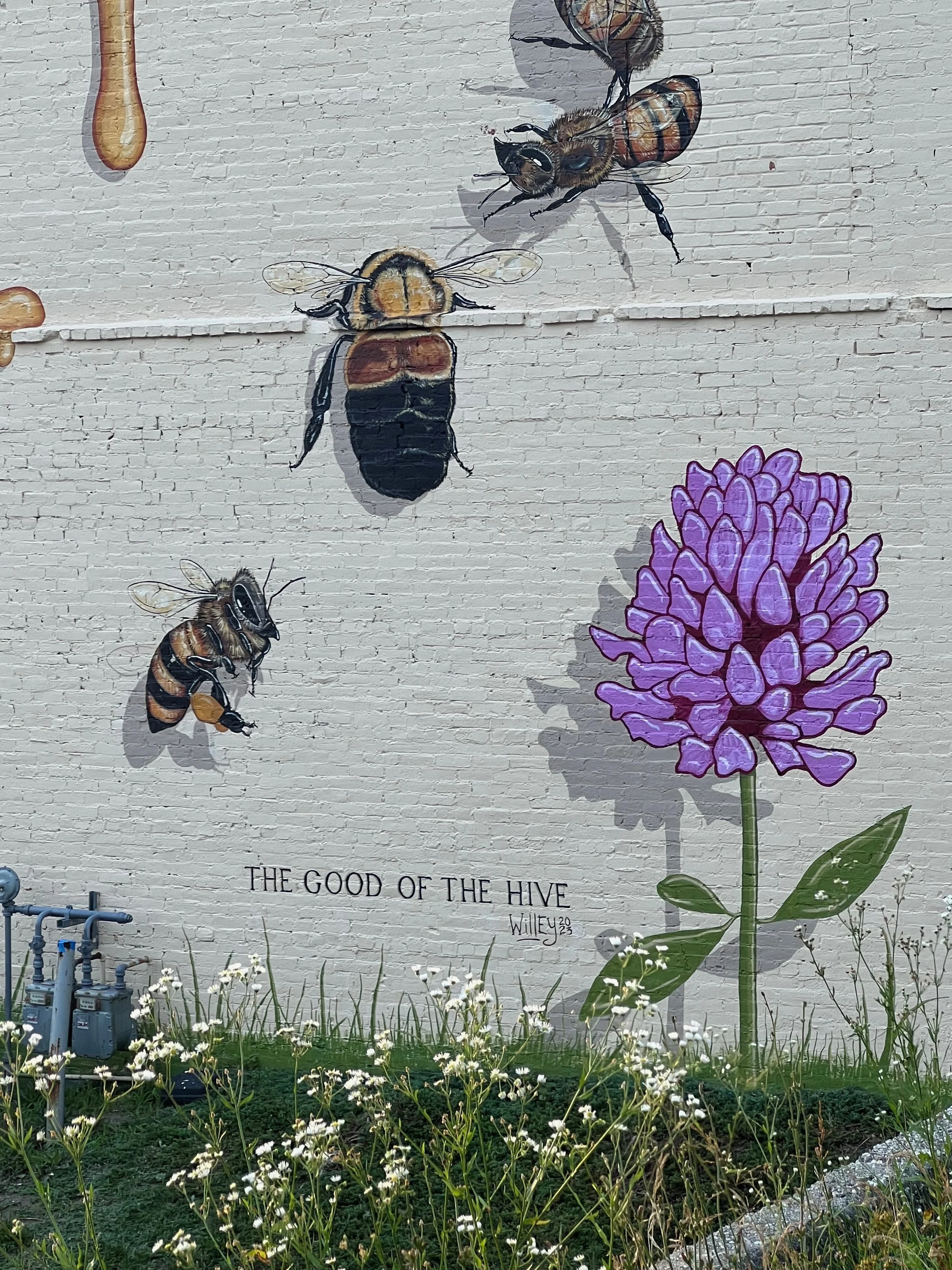 Since the mural was painted Bangor Beautiful has continued the mission of their commitment to pollinators becoming a Bee City USA member and planting trees and pollinator friendly plants all over the city.